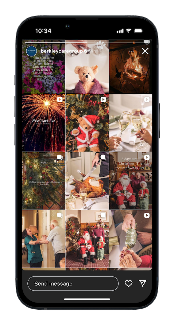 The imperative was consistency and humanity. Every piece of content needed to reflect real life in the homes, not aspirational fantasy or corporate promises. By focusing on what Berkley facilitates rather than what it provides, we created a social media presence where the homes, activities, spaces, chefs, residents, staff and community are the stars. The strategy challenged care home clichés, shifting Berkley into a luxury space that didn't even need to explain that it was luxury anymore. From the first post, we built trust by showing rather than telling, helping families understand why Berkley is the place their loved ones would genuinely want to call home.
